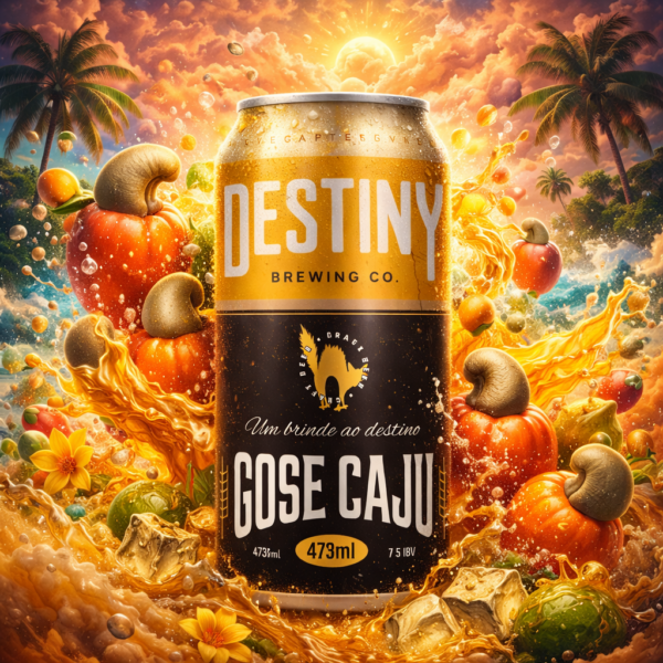 Esta Gose une a base técnica de uma cerveja ácida alemã ao toque regional do caju. Apresenta cor clara e turbidez natural. O aroma é marcado pela acidez da fruta fresca, complementado por uma nota mineral discreta. É uma cerveja produzida através de acidificação controlada, garantindo frescor e qualidade.