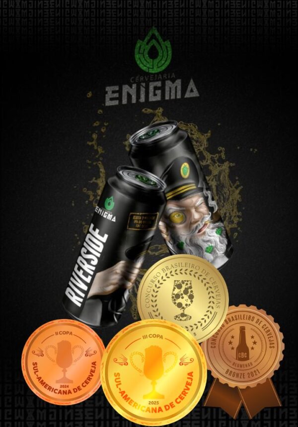 Com base neutra e amargor acertivo, ela se destaca pelos aromas resinosos e tropicais do blend de lúpulos citra, mosaic e mais um que é um Enigma.